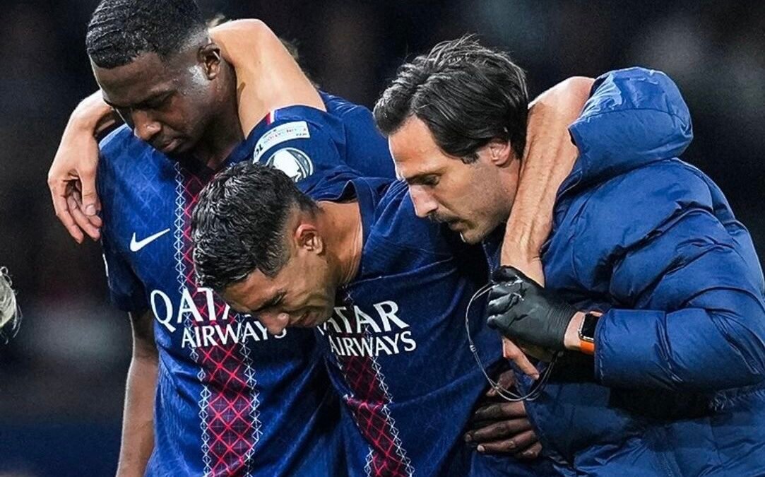 Es grave, pero no tan grave. Ya se conocen los detalles de la impactante lesión del lateral derecho marroquí Achraf Hakimi. Según el propio PSG en un reciente comunicado oficial, el futbolista presenta un esguince severo en el tobillo izquierdo, lo que a priori, dejará sin actividad hasta 2026 a la máxima figura de Marruecos.