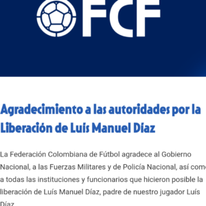 Colombia y Fedefutbol agradecen liberación de “Mañe” Diaz