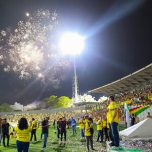 Una auténtica fiesta se vivió al inicio del partido y en el intermedio organizada por la Gobernación de Bolívar, IDERBOL Alcaldía de Cartagena e IDER, por parte de la afición auriverde, que preparó todo un espectáculo para recibir al equipo y mostrar su apoyo incondicional en un escenario que contó con iluminación completamente renovada.