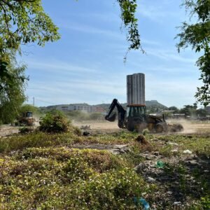 La intervención del lote, con la participación de la cuadrilla de la Alcaldía y la maquinaria necesaria para la recuperación de la zona, se inició con un cerramiento y labores de limpieza para la recolección de escombros y residuos.