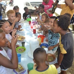 Este martes, niños, jóvenes y adultos mayores en situación de pobreza extrema, almorzaron con los suculentos sancochos que se cocinaron en los diferentes barrios afectados por las inundaciones. La ejecución de estas ollas es apoyada también por la UMATA, la Secretaría de Participación Ciudadana y Renta Ciudadana.