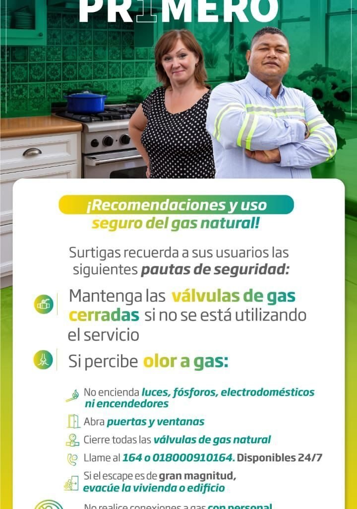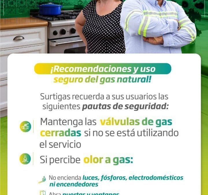 Surtigas reitera el llamado a la comunidad para hacer un uso seguro del gas natural tomando las siguientes medidas preventivas: