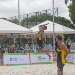 El Parque Metropolitano del Café, fue el escenario donde las dos duplas bolivarenses se enfrentaron, en el inicio de esta disciplina en estas justas deportivas. Rivas y Denis, que conforman la dupla #1, vieron acción, ante la dupla #2 de Bolívar, conformada por Brando Coquel y Yeison Torres, quienes ganaron el primer set 21-16, pero se vieron doblegados por la experiencia de Denis y Rivas y fue así que terminaron imponiéndose en el segundo set 21 -10 y tercer set 15-5.